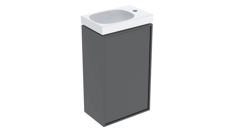 Vores små håndvaske fås også i forskellige former og er alle væghængte. Mangler du opbevaringsplads under vasken, kan du vælge et lille skab.