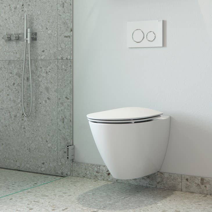 PLADS TIL RENGØRING: Gulvet under væghængte toiletter er frit, så der ikke er nogen unødige skjulesteder for støv.